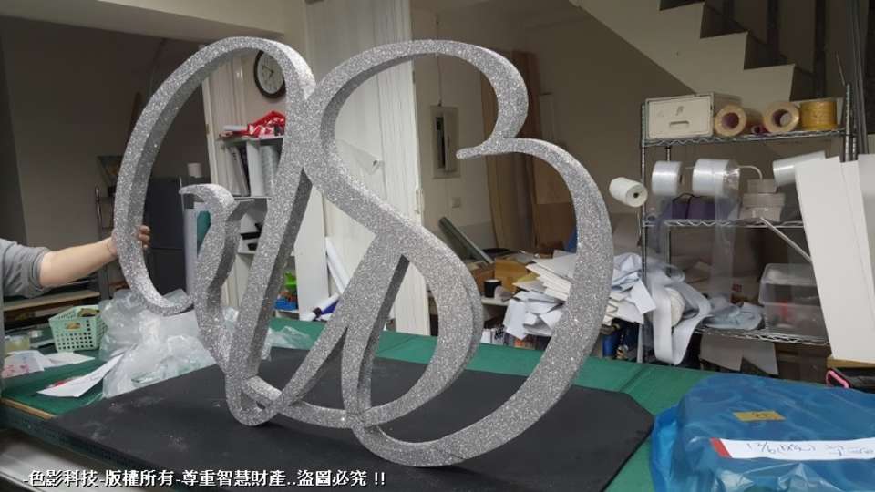 保麗龍立體字_噴銀漆+銀蔥粉